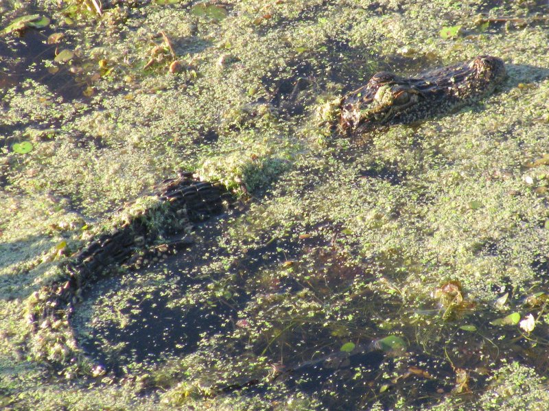 That was when Mark saw some subtle movements among the sea weed closer to us. As we scanned the area more closely, we found ten different alligators swimming in that "empty" marsh.