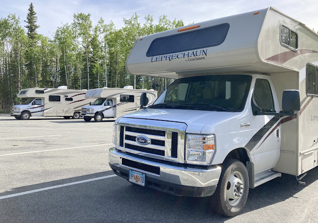 We visited with the driver of the U-Haul truck that was parked beside us. No, they aren't moving--they are touring. We had heard that rental cars and RVs are totally booked this summer. So inventive tourists have found that the U-Haul daily rental rate is the most affordable option for touring Alaska right now.