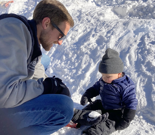 At 14-months of age, this is one of Eli's first snow experiences. Uncle Blake is teaching him about snow balls and the fun he is going to have with this strange cold white stuff.