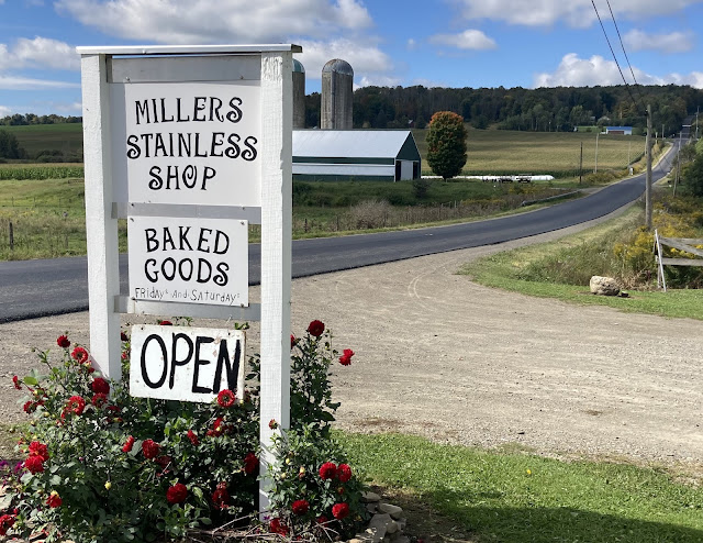 We headed up and down the steep hills of southwestern New York. We were looking for an Amish bakery, and found this one that's only open on Friday and Saturday. We're glad that our timing was great this time.